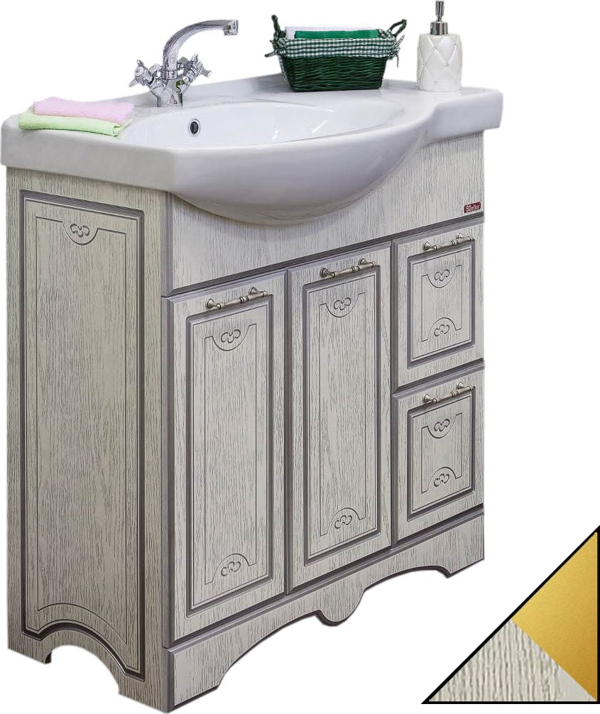 Тумба для комплекта Sanflor Адель 82 белая, патина золото, R |