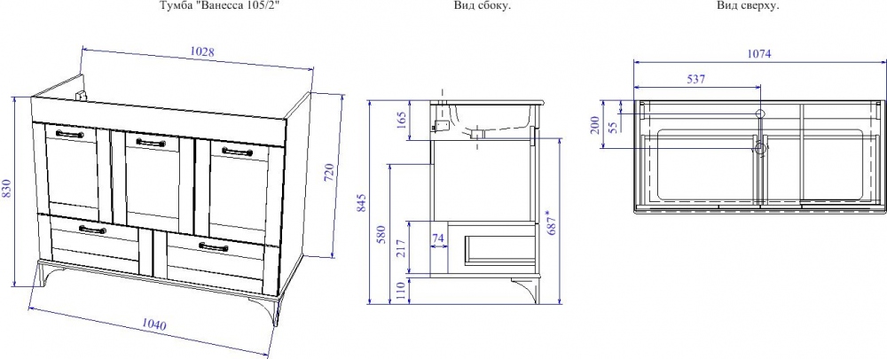 Тумба для комплекта Sanflor Ванесса 105 напольная, индиго имеет следующие характеристики: - Вид изделия: Тумбы под раковину - Бренд: Sanflor - Коллекция: Ванесса - Стилистика дизайна: Ретро - Цветовое оформление: Синий - Гарантийный срок: 2 года - Производство: Россия - Высота, см: 83 - Глубина, см: 45 - Ширина, см: 104|