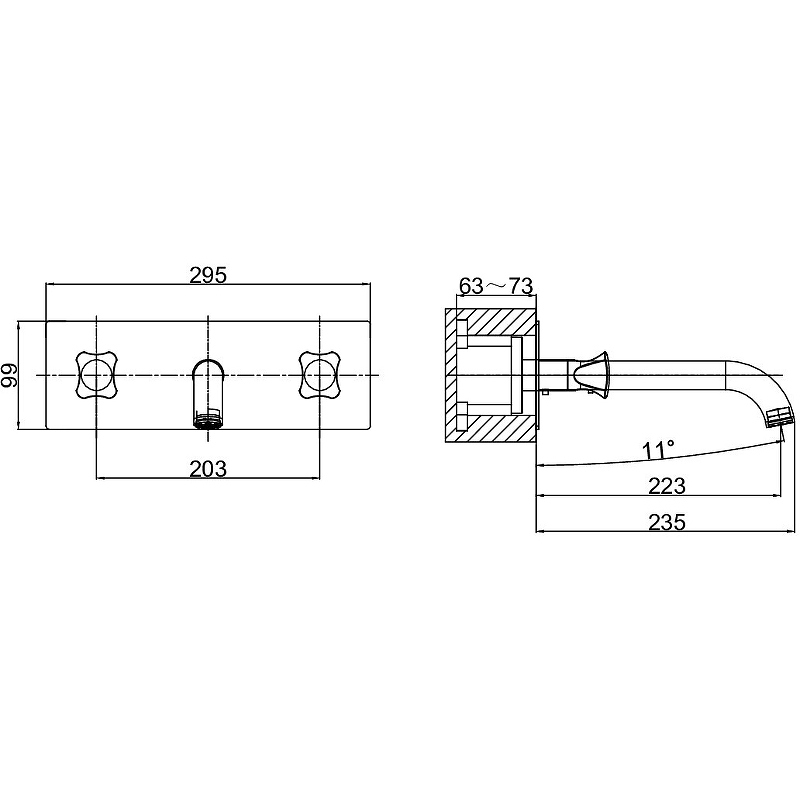 Смеситель для раковины встраиваемый D&K Hessen Grimm (DA1384401) имеет следующие характеристики: - Вид изделия: Для раковины - Бренд: D&K - Коллекция: Hessen.Grimm - Стилистика дизайна: Современный - Цвет: Хром - Коллекция: Hessen.Grimm - Форма: Округлая - Материал: Латунь - Управление: Вентильное - Механизм: Керамическая кран-букса - Монтаж: На Стену - Отверстия для монтажа: 1 отверстие - Длина излива, см: 22.3 - Вращение излива: Фиксированный - Гарантийный срок: 5 лет - Производство: Германия|