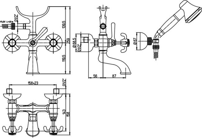 Смеситель Paini Ornellaia 87CR105 для ванны с душем имеет соответствующее характеристики: - Вид изделия: Для ванны - Бренд: Paini - Коллекция: Ornellaia - Стилистика дизайна: Ретро - Цвет: Хром - Коллекция: Ornellaia - Форма: Округлая - Материал: Латунь - Управление: Двухвентильное - Механизм: Керамическая кран-букса - Монтаж: На Стену - Отверстия для монтажа: 2 отверстия - Длина излива, см: 14.3 - Гарантийный срок: 5 лет - Производство: Италия - Высота, см: 25.9 - Глубина, см: 15 - Ширина, см: 22.65|