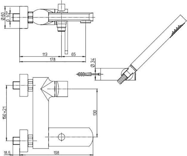 Смеситель Paini Ovo 86PW105 для ванны с душем имеет следующие характеристики: - Вид изделия: Для ванны - Бренд: Paini - Коллекция: Ovo - Стилистика дизайна: Современный - Цвет: Хром - Коллекция: Ovo - Форма: Округлая - Материал: Латунь - Управление: Рычажное - Механизм: Керамический картридж - Монтаж: На Стену - Отверстия для монтажа: 2 отверстия - Длина излива, см: 17.8 - Гарантийный срок: 5 лет - Производство: Италия - Высота, см: 12 - Глубина, см: 19.8 - Ширина, см: 21|