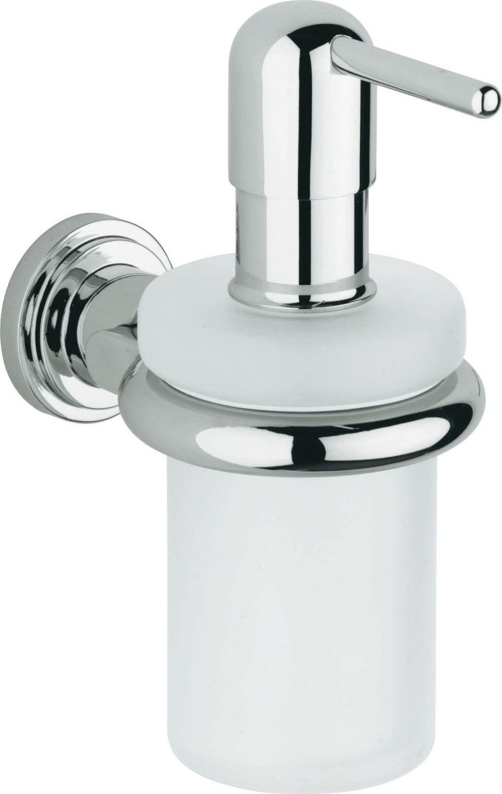 Дозатор Grohe Atrio 40306000 имеет соответствующее характеристики: - Бренд: Grohe - Вид аксессуара: Дозаторы - Коллекция: Atrio - Цвет: Хром - Стилистика дизайна: Современный - Материал: Латунь - Форма: Круглая - Страна-производитель: Германия - Метод крепления: Шурупы - Монтаж: Подвесной - Глубина, см: 13.1 - Ширина, см: 7.5 - Высота, см: 15|