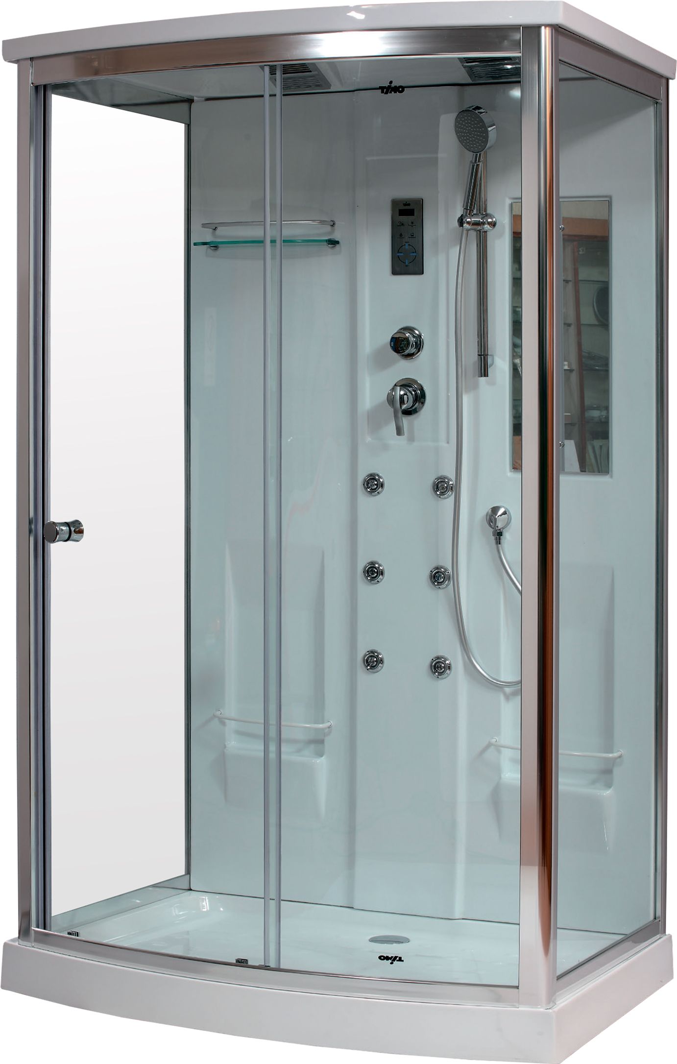 Душевая кабина Timo Lux T-7715 имеет следующие характеристики: - Вид товара: Душевые кабины - Бренд: Timo - Коллекция: Lux - Форма кабины: Прямоугольная - Цвет профиля: Хром - Материал поддона: Акрил - Вид поддона: Средний - Управление: Сенсорное - Конструкция дверей: Раздвижные - Исполнение полотна двери: Прозрачное - Гарантийный срок: 1 год - Высота, см: 225 - Ширина, см: 120 - Глубина, см: 90|