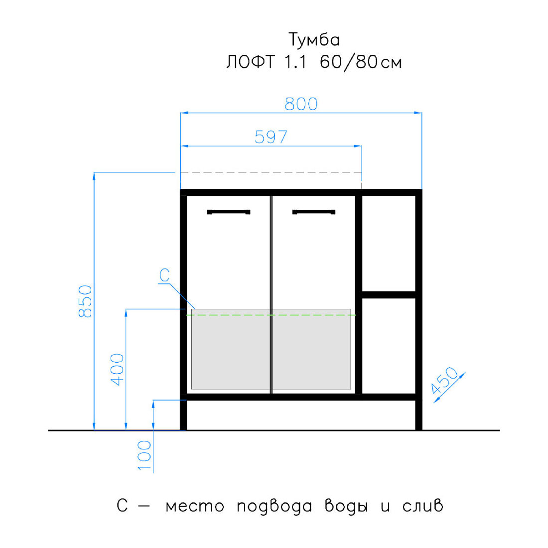 Тумба для комплекта Style Line Лофт 60/80 бетон |