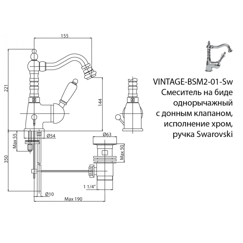 Смеситель для биде Cezares Vintage VINTAGE-BSM2-03/24-Sw имеет следующие критерии: - Вид изделия: Для биде - Бренд: Cezares - Коллекция: Vintage - Коллекция: Vintage - Управление: Однорычажное - Монтаж: Стандартные - Отверстия для монтажа: 1 отверстие - Производство: Италия|