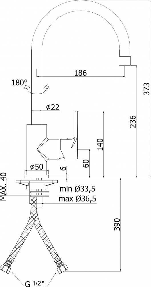 Высота излива, см